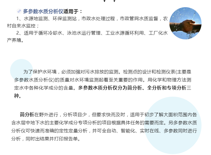 今日講解多參數(shù)水質(zhì)分析儀的用途和工作原理