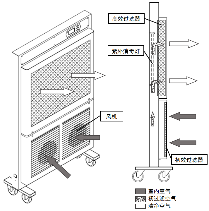 BIOBASE/博科紫外線空氣消毒器是利用風動系統(tǒng)將室內(nèi)污濁的空氣吸入設備中,經(jīng)過濾系統(tǒng)、殺菌系統(tǒng)對吸入的空氣進行凈化消毒處理后放回室內(nèi),通過不斷的循環(huán)使室內(nèi)空氣質(zhì)量逐步提升到一定潔凈等級,以達到去除室內(nèi)有害氣溶膠、保護人員健康的目的。