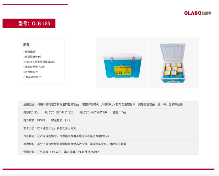 OLABO歐萊博生物安全運輸箱OLB-L85