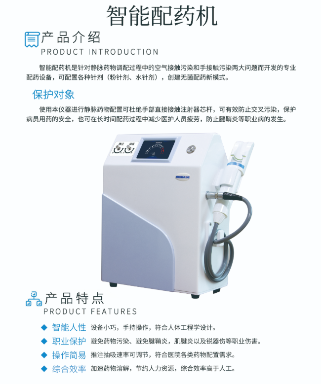 設(shè)備小巧,手持操作,避免藥物污染,符合人體工程學(xué)設(shè)計(jì)。