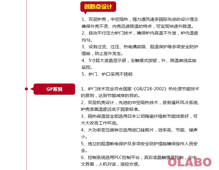 4、具有安全保障措施:本系列電阻爐設有過壓、過流、爐體表面過熱保護保護開關。另設有防止供電線路停電恢復后,在無人值守情況下電阻爐繼續加熱功能;及開啟爐門后,爐膛停止供電裝置等保護設施。